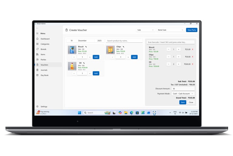 Retail Admin is a powerful and easy-to-use POS billing and inventory management software designed for retail shops, small businesses, wholesalers, and local stores.